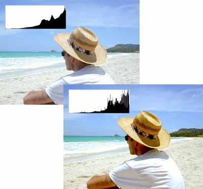 Sebuah tool yang berguna untuk mengevaluasi tunal sebuah image adalah histogram yang terlihat pada Levels dialog box. Histogram menggambarkan bagaimana pixels dalam image didistribusikan oleh grafik jumlah pixels pada tiap level intensitas warna. Ini dapat menunjukkan sebuah image berisikan cukup detail pada bayangan (terlihat pada sisi kiri histogram), midtones (terlihat di tengah), dan highlights (terlihat pada bagian kanan) untuik membuat contras yang baik pada image secara keseluruhan.